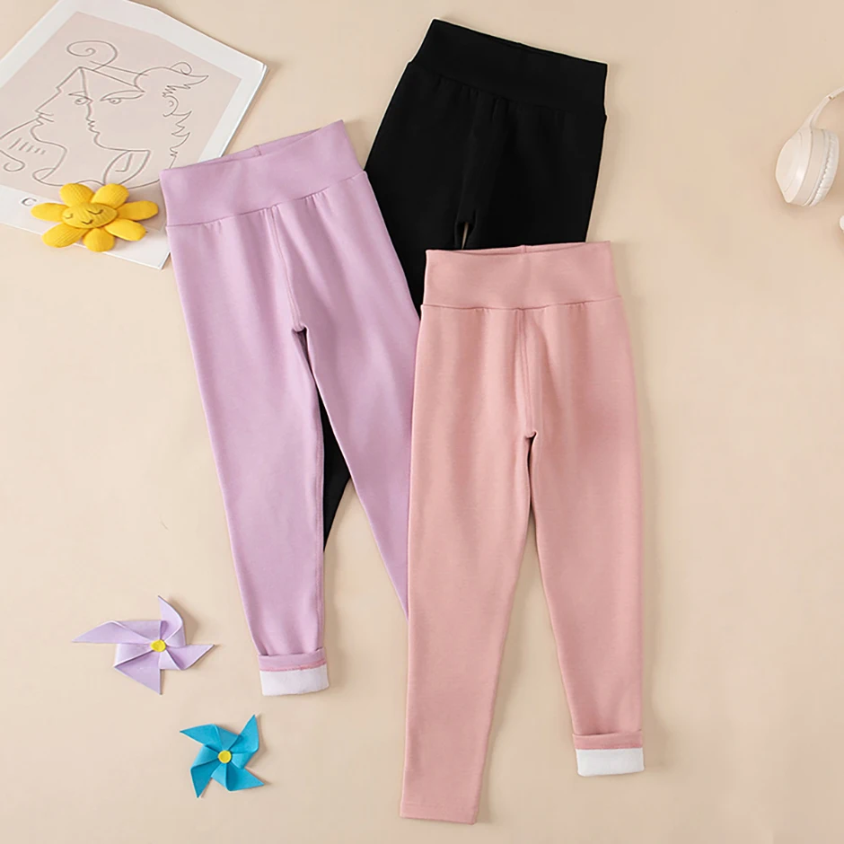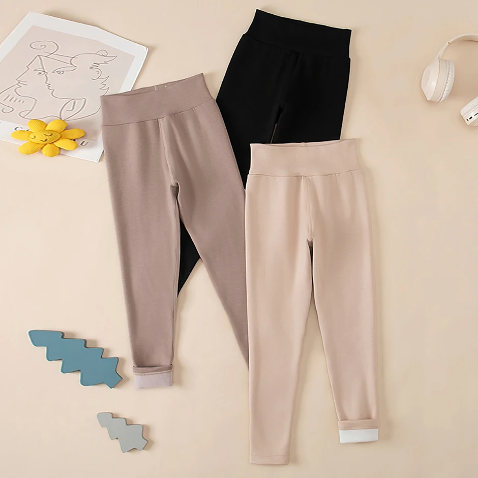 3/1 Piece Set For Autumn And Winter Children Solid Color Medium High Waist Thick Leggings Boys And Girls Fleece Warm Casual Pant