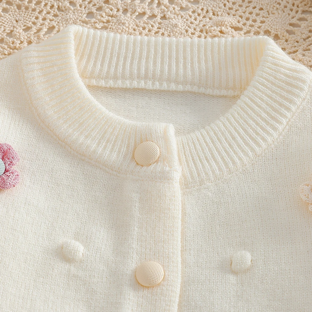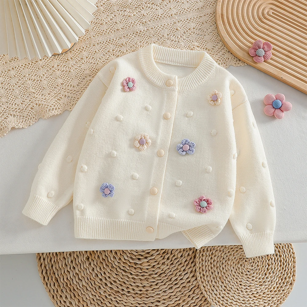 Girls' Knitted Cardigan 2-8 Years Soft Sweater Coat with Colorful Flowers Fashion Toddler Girl Autumn Winter Top